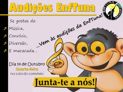 Imagine o caro leitor que tem um bar do tamanho da boca da Manuela Moura Guedes... não, isso é muito grande. Imagine então que tem um bar do tamanho da credibilidade da Dra. Manuela Ferreira Leite... não, isso é pequeno demais. Imagine então definitivamente que o caro leitor/ fã/ curioso desta tasca é possuidor de um bar, com dimensões aproximadas entre uma caixa de sapatos e a mala de maquilhagem do palhaço Batatinha (que é relativamente grande... ou não) e um tecto de altura equivalente ao mais baixo dos sete anões da Branca de Neve. O caro leitor, de repente tem a ideia genial de convidar a EnfTuna para ir lá tocar umas modas. E assim foi, por volta das 0h30 do dia 23 de Outubro, o caro leitor imagine cerca de 35 marmanjos e marmanjas (mais cerca de 15 novos candidatos) enfiados/ encurralados/ enlatados no espaço supracitado a cantar, a tocar e fazer os passos das músicas quase exclusivamente com os dedos dos pés (e ainda assim batíamos uns nos outros). A isto junte um público essencialmente masculino que alternava os aplausos com baba a cair para o chão a olhar para as pandeiretas e comentários próprios de um gorila domesticado que está a aprender a fazer a corte... Enfim...